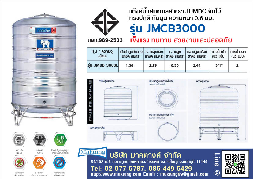 คุณสมบัติพิเศษแท้งค์น้ำสแตนเลสตราช้างJUMBO(จัมโบ)หรือตราช้าง