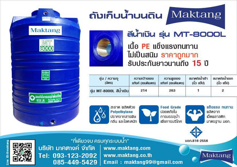 แท้งค์น้ำ PE Maktang รุ่น MT-8000 สีน้ำเงิน