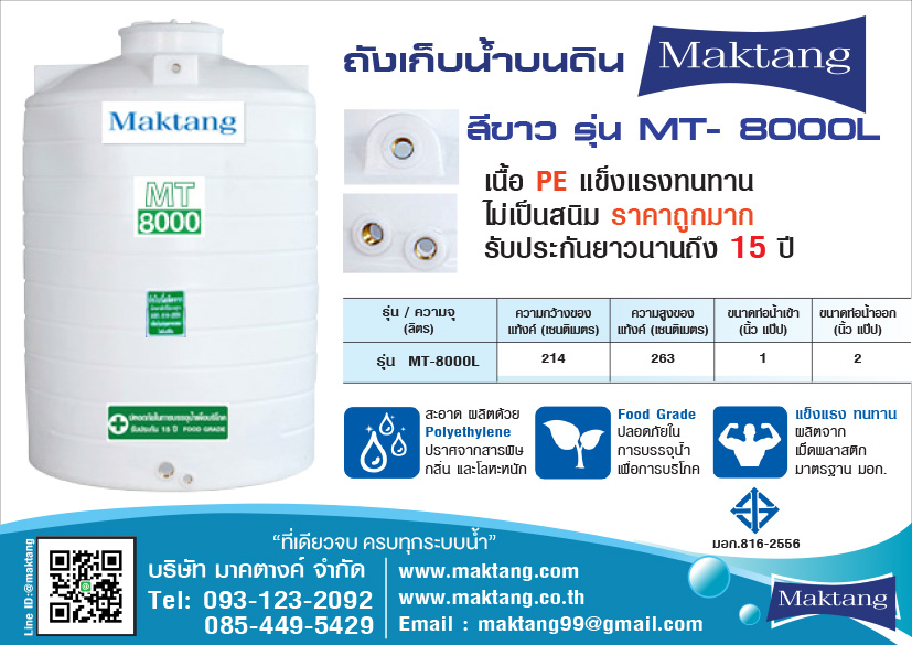 แท้งค์น้ำPE Maktang MT-8000 สีขาว
