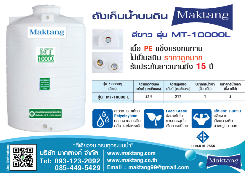 แท้งค์น้ำ PE Maktang รุ่น WT-10000 สีขาว