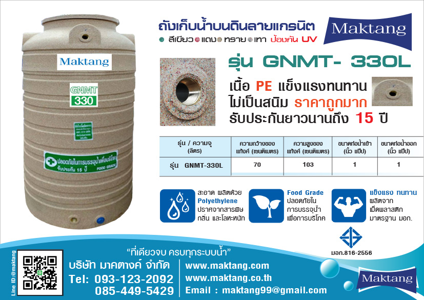 แท้งค์น้ำ PE Maktang รุ่น MGN-330 ลายแกรนิต สีทราย