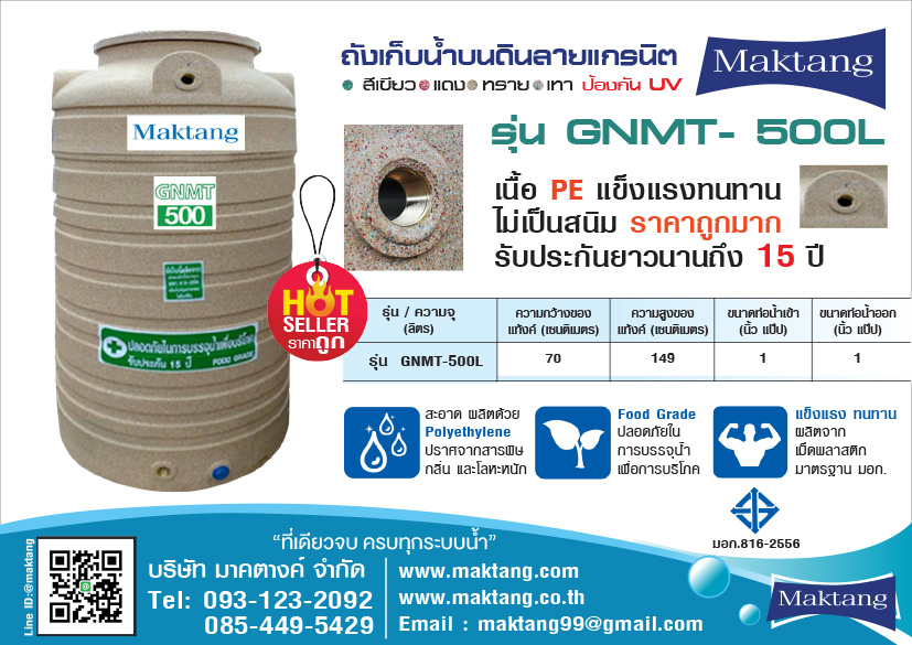 แท้งค์น้ำ PE Maktang รุ่น MGN-500 ลายแกรนิต สีทราย