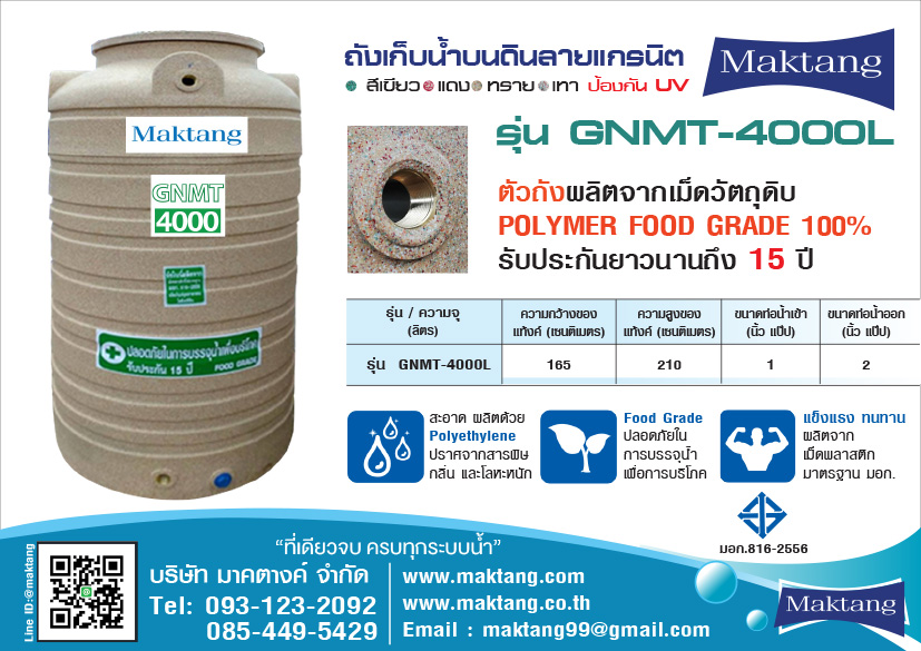 แท้งค์น้ำ PE Maktang รุ่น MGN-4000 ลายแกรนิต สีทราย