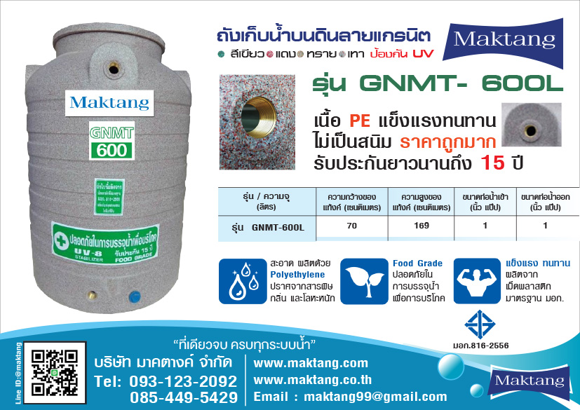 • แท้งค์น้ำ PE Maktang รุ่น MGN-1500 ลายแกรนิต สีเทา