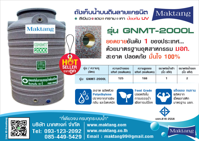 • แท้งค์น้ำ PE ตรา Maktang