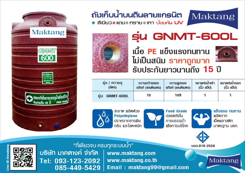 • แท้งค์น้ำ PE ตรา Maktang