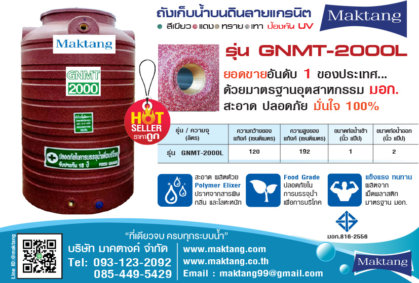 • แท้งค์น้ำ PE Maktang รุ่น MGN-3000 ลายแกรนิต สีแดง