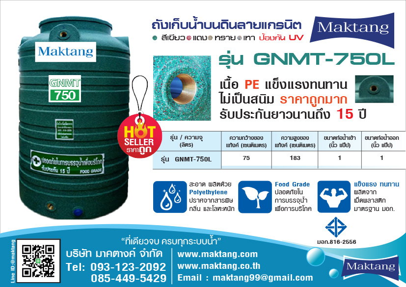 • แท้งค์น้ำ PE ตรา Maktang