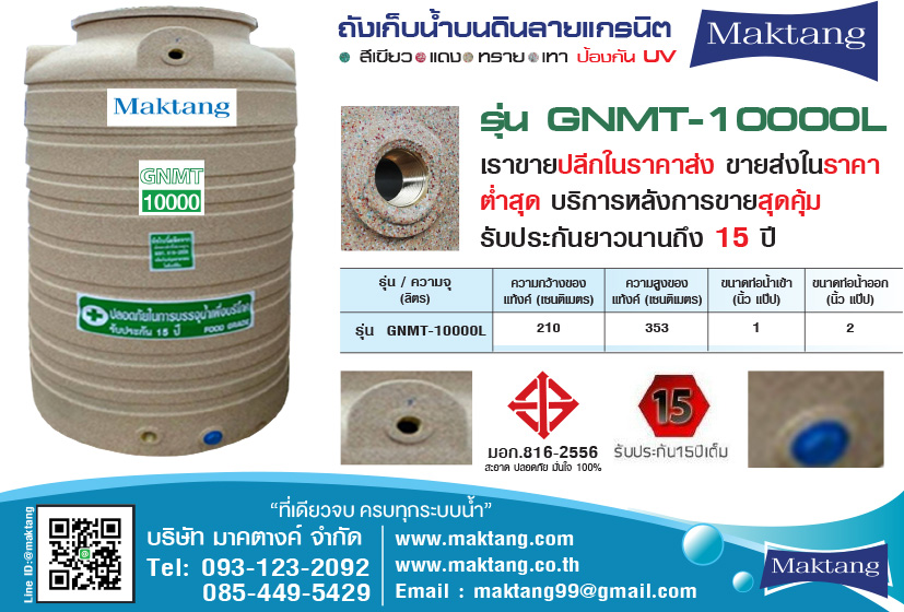 • แท้งค์น้ำ PE Maktang รุ่น MGN-1500 ลายแกรนิต สีเทา