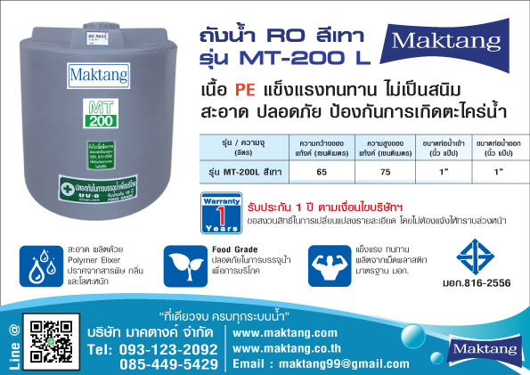 แท้งค์น้ำ PE Maktang 200 ลิตร สีเทา MT200GY