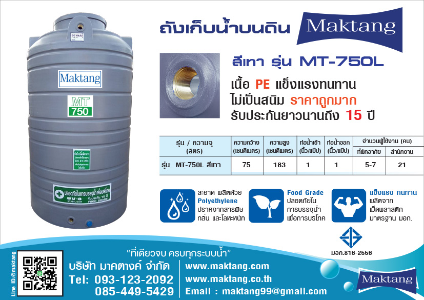 • แท้งค์น้ำ PE ตรา Maktang