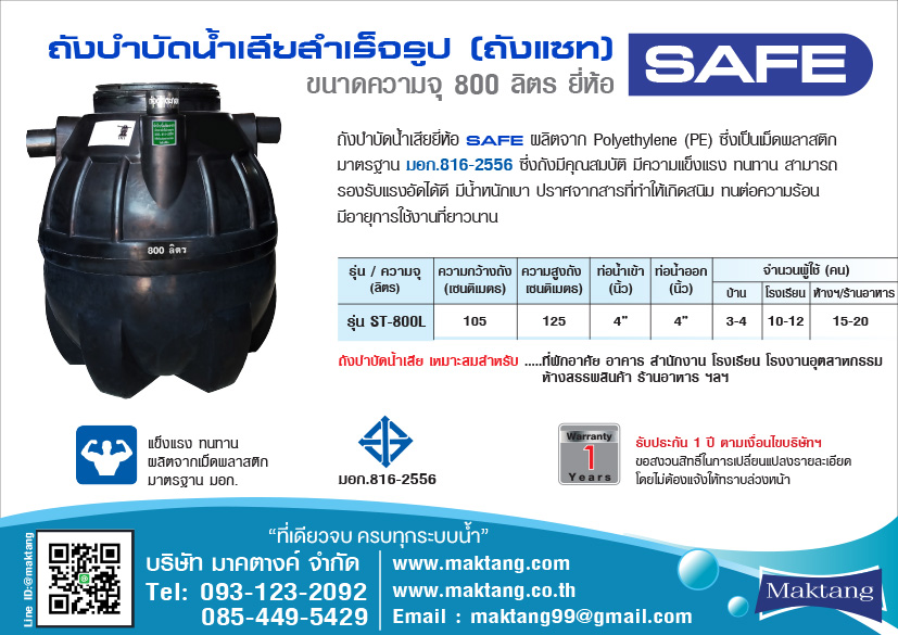 - ถังแซท แบบไร้อากาศ ตรา SAFE มีรับประกัน 1 ปี