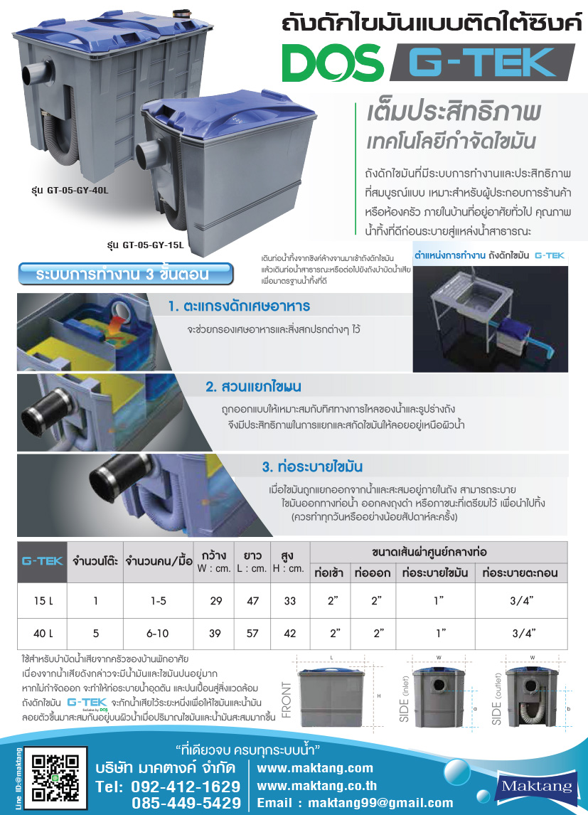 วิธีการใช้งานและดูแลรักษา ถังดักไขมันแบบติดใต้ซิงค์ ขนาด 40 ลิตร ตรา DOS รุ่น G-TEK 40L